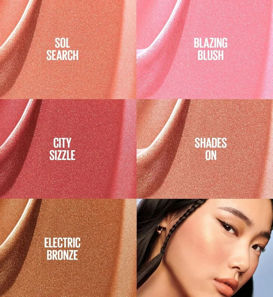 Blush Líquido Sunkisser Maybelline NY é um blush líquido multifuncional 3 em 1 que funciona tanto como blush, bronzeador e iluminador, permitindo criar uma variedade de looks, desde um blush suave até uma aparência bronzeada ousada. O Blush Sunkisser da Maybelline foi desenvolvido para dar às suas maçãs do rosto(bochechas) um aspecto natural com um brilho quente, saudável e bronzeado.