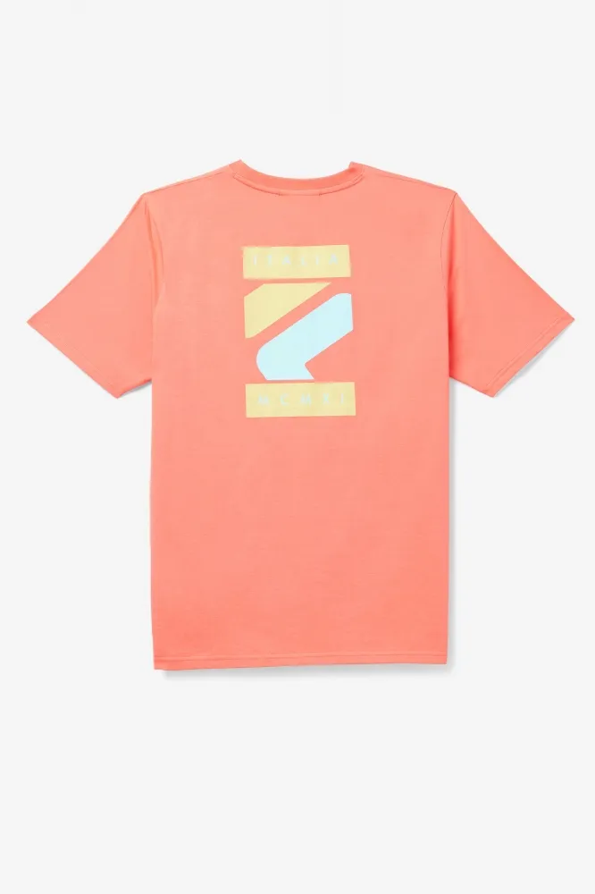 Camiseta Fila Quartz Graphic confeccionada em algodão macio e entrelaçado, gola redonda com acabamento nervurado reforçado, logotipo F Box bordado no lado esquerdo do peito e Gráfico impresso no centro das costas