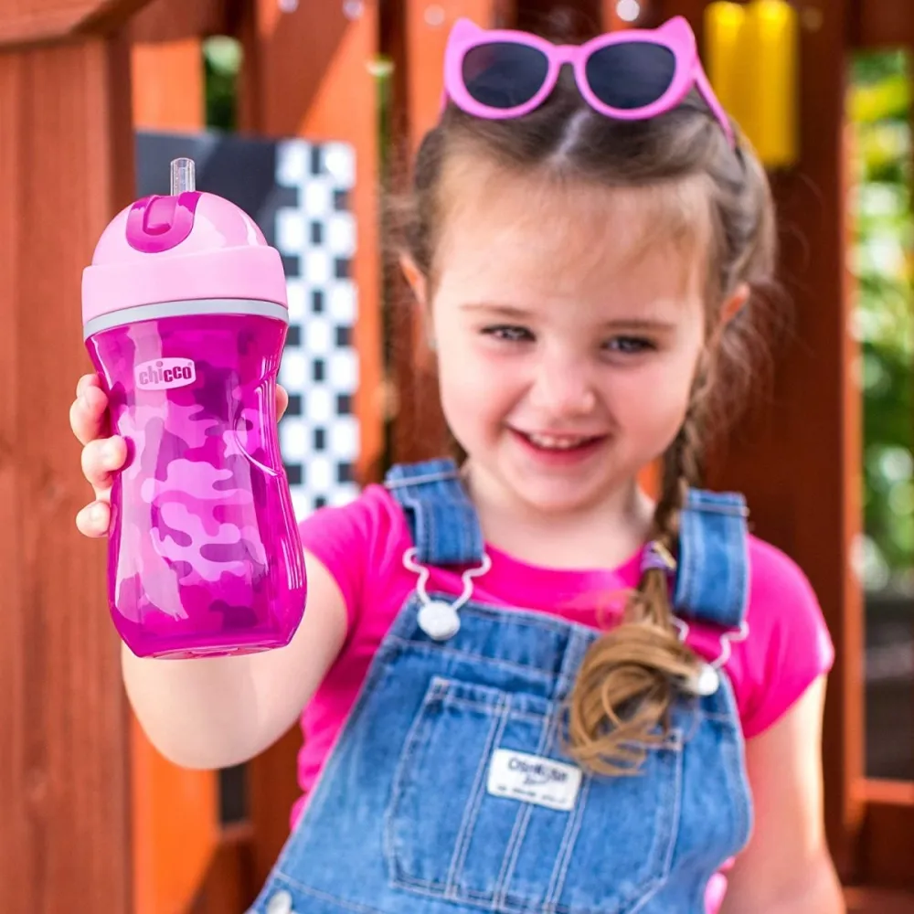 Copo Térmico Chicco Com Canudo Sport Camuflado Pink-260ml–12M+
