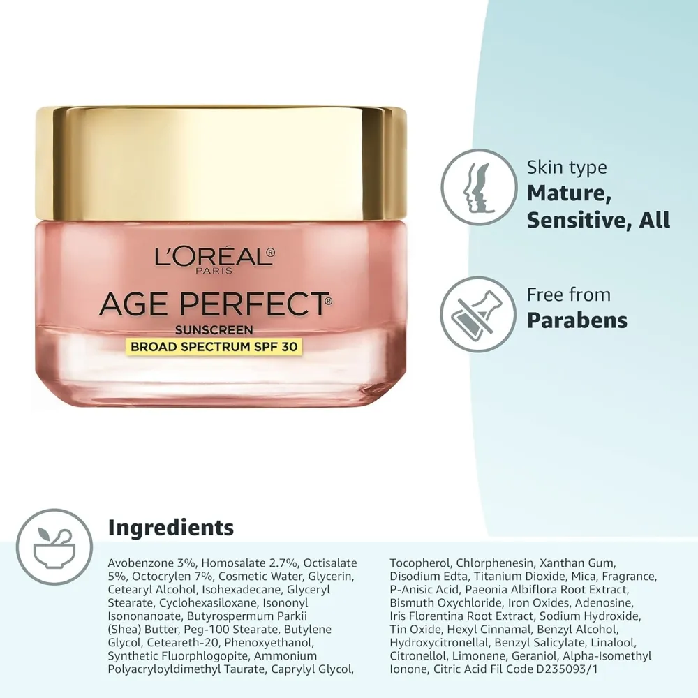 L'Oreal Paris Age Perfect Rosy Tone é um creme facial diário antienvelhecimento com proteção solar de amplo espectro UVA/UVB SPF 30, com seu tom rosado, hidrata imediatamente a pele.