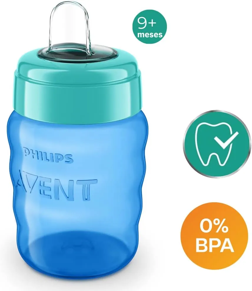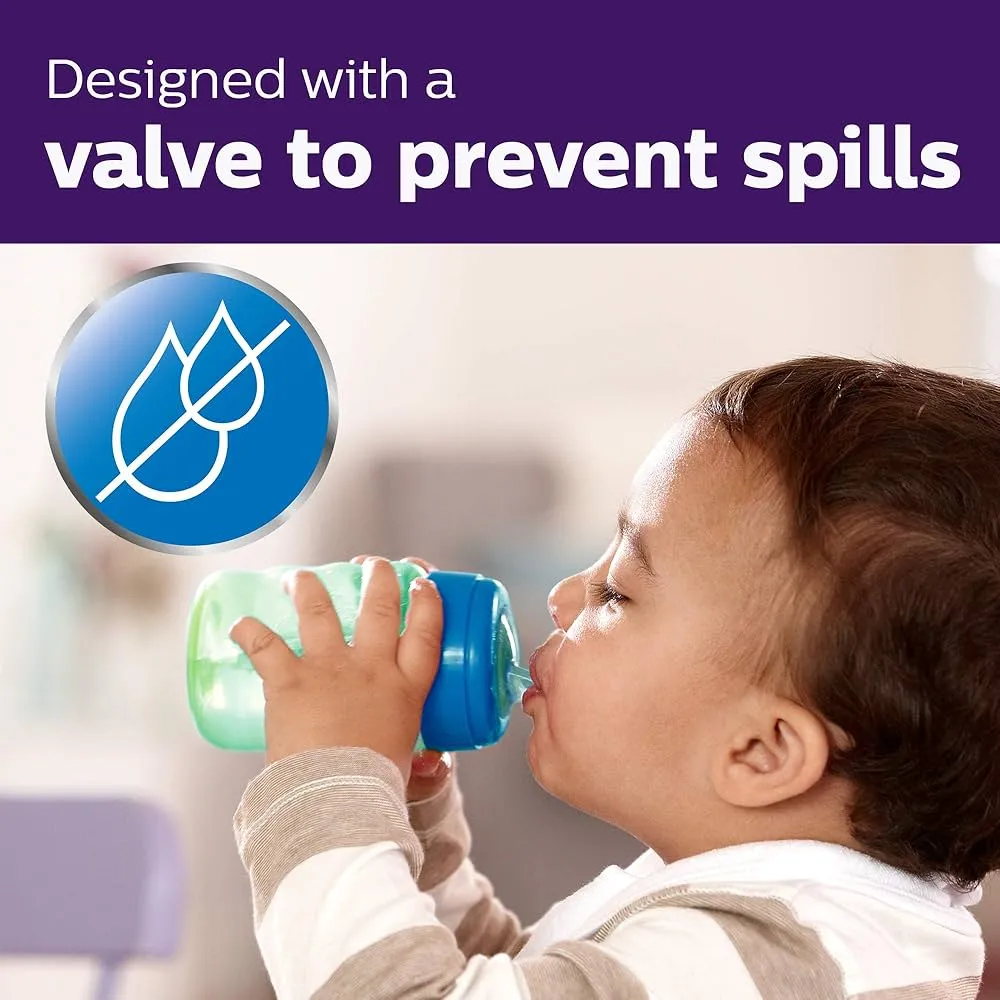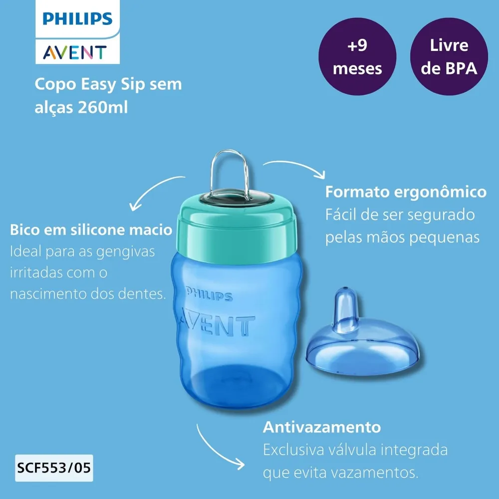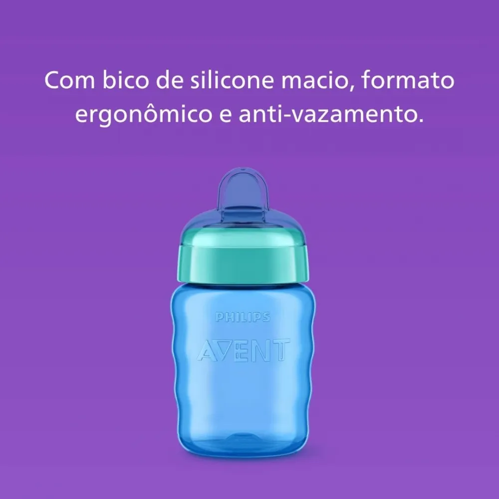 Kit Copo Philips Avent Easy Sippy com bico de silicone macio, anti vazamento, é essencial para as gengivas irritadas com o nascimento dos dentinhos.