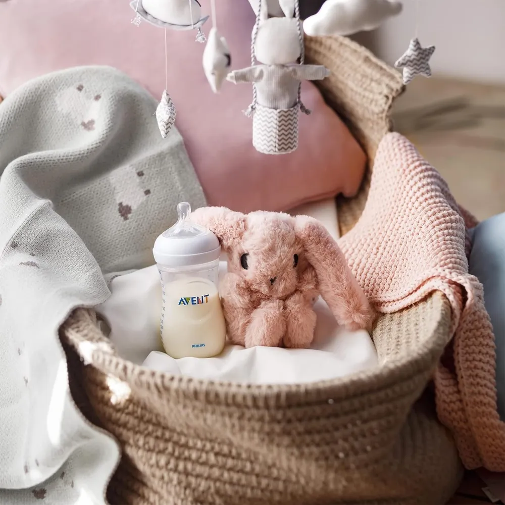 A mamadeira conta com um design inovador de pétala para que o bebê possa se alimentar como se fosse o seio, facilitando a amamentação pelo seio e pela mamadeira. Fabricada com materiais isentos de bisfenol(polipropileno). A inovadora válvula dupla reduz o desconforto ventilando ar para dentro da mamadeira em vez da barriga do bebê.