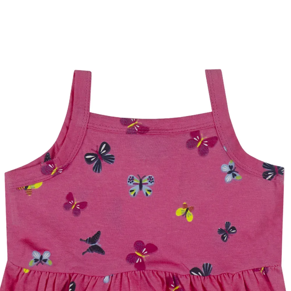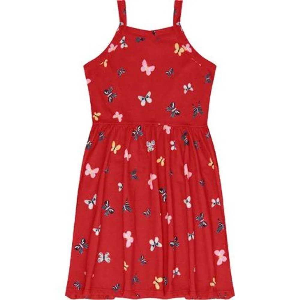 Vestido infantil confeccionado em malha de algodão, padronagem borboletas, alças finas, tecido leve e super versátil porque pode ser usado em qualquer estação do ano.